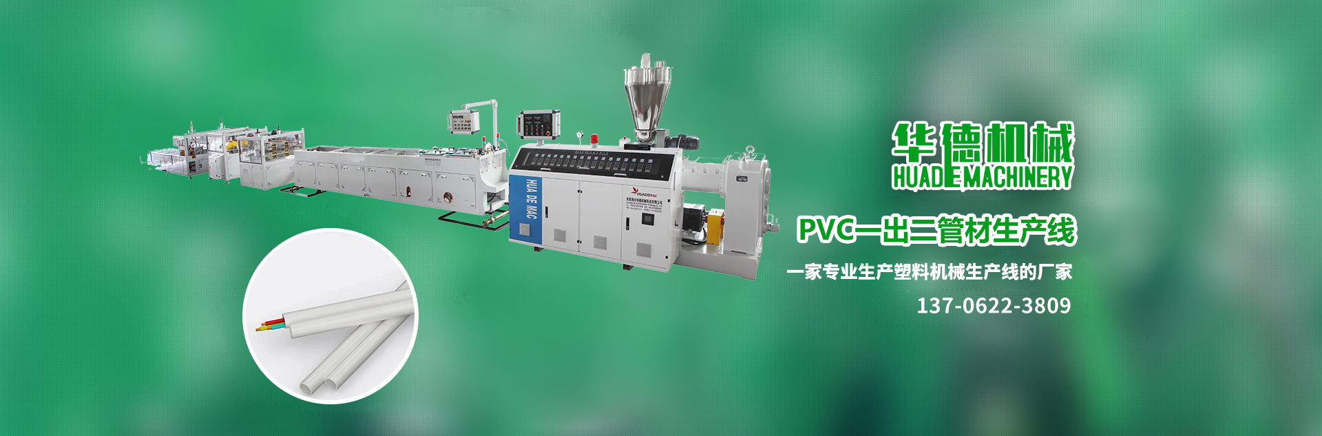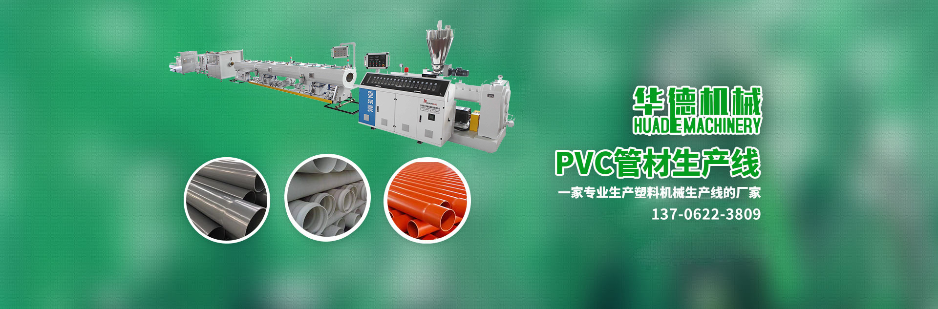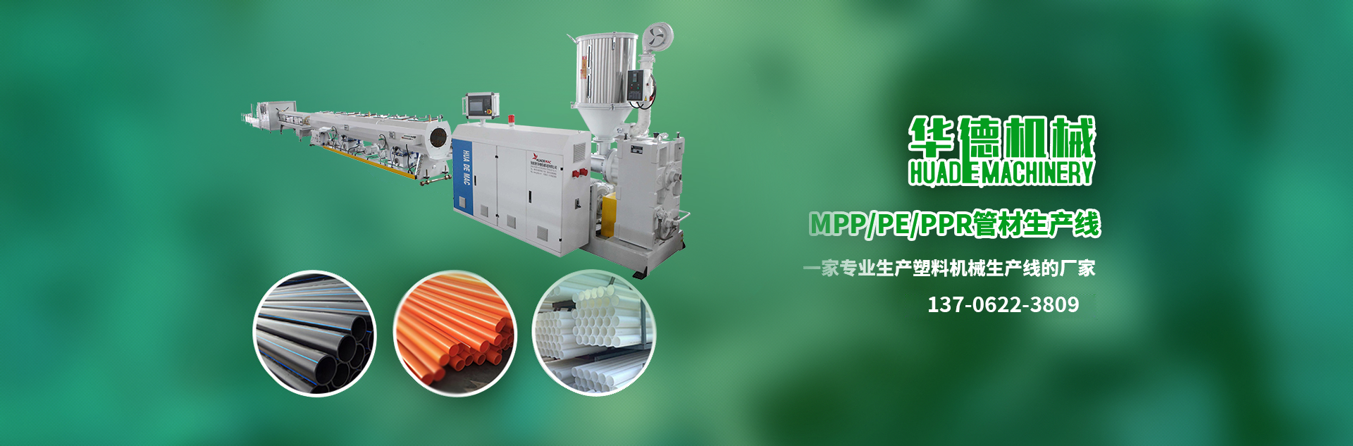 專業制造:系列單雙螺桿擠出機、PPR管材生產線、PVC給水/排水管材生產線、HDPE管材生產線、MPP/CPVC電力管生產線、PVC各類異型材等成套擠出生產線及干燥機、上料機、破碎機、擴口機、高速混合機、牽引機、磨粉機等系列塑料機械。